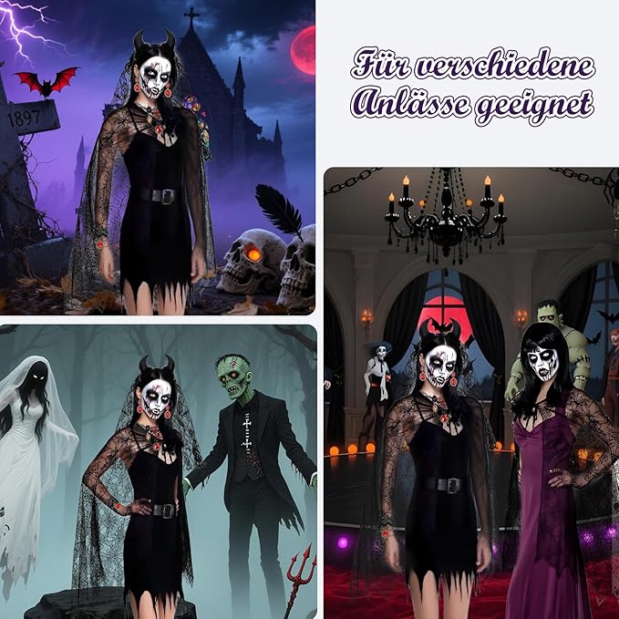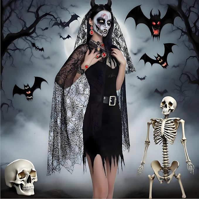 - 🧙♀️ Lace Spiderweb Cape – 110cm long, fits most adults with flowing gothic style